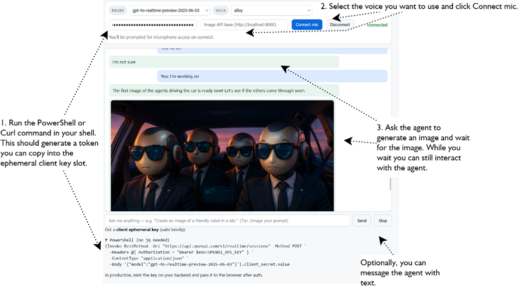 connecting the real-time voice agent to the API image generation agent as a tool and then generating images.