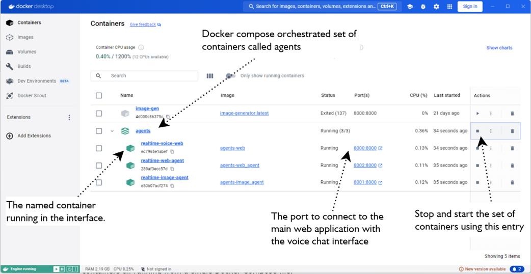 - Define each service (web UI, voice agent, image agent, etc.) in