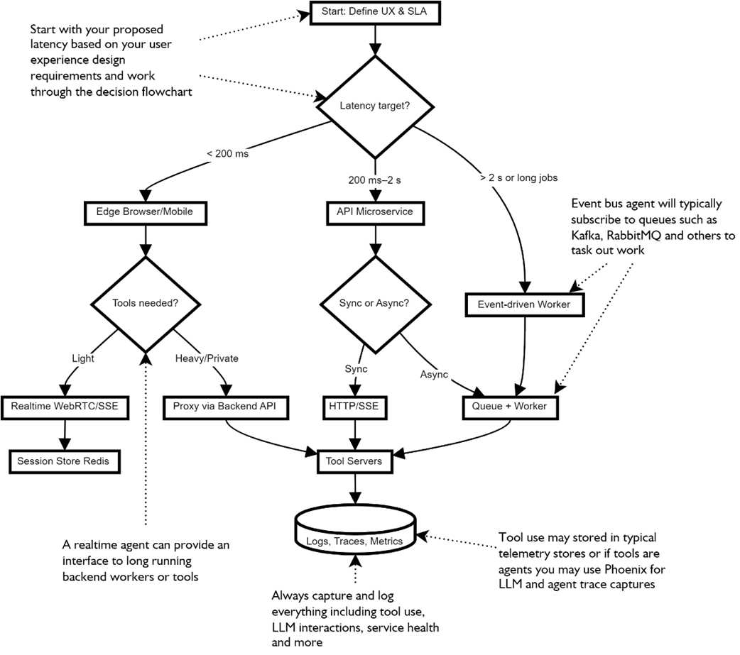 - Agent consumption drives deployment: embed for ultra‑low latency UX, wrap as a synchronous API for request/response tasks, or run as event‑driven workers for long jobs and retries.