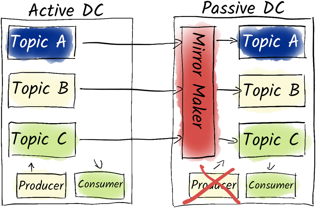 An Active-Passive cluster with MirrorMaker.