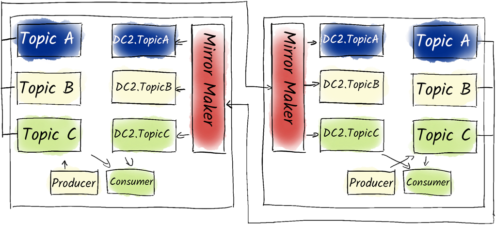 - In active-active configurations, consumers can read from both clusters and need to aggregate data appropriately.