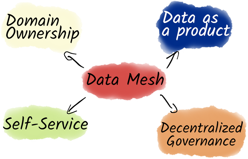 - Key principles of the data mesh include treating data as a product, domain ownership, self-service data infrastructure, and decentralized governance.