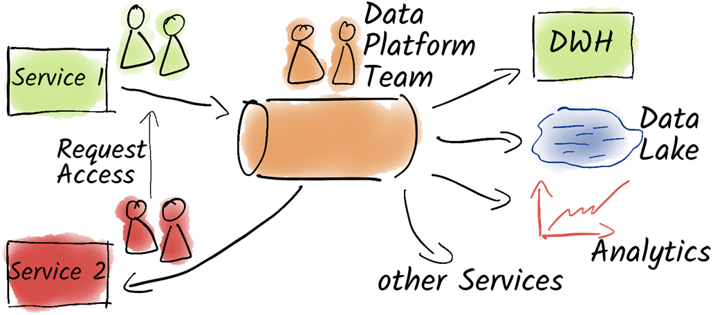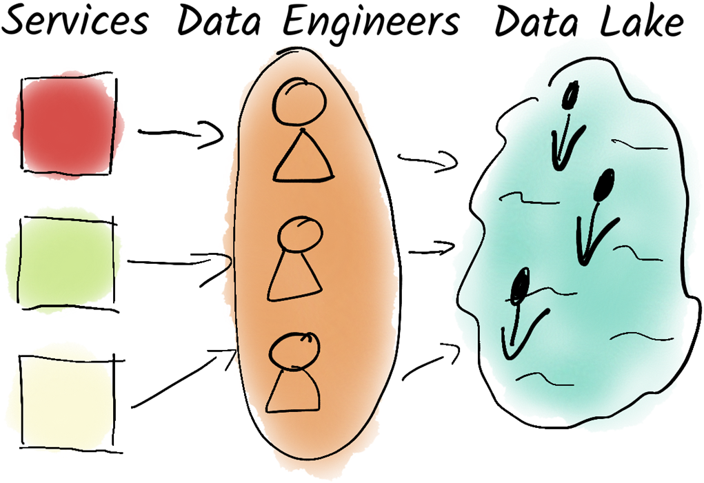 A team of data engineers ensures that all data from all services is centrally collected in a data lake. Since these teams cannot accurately assess the quality of the data, the data lake often turns into a data swamp.