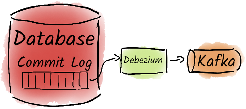 Debezium accesses the commit log of the database directly.