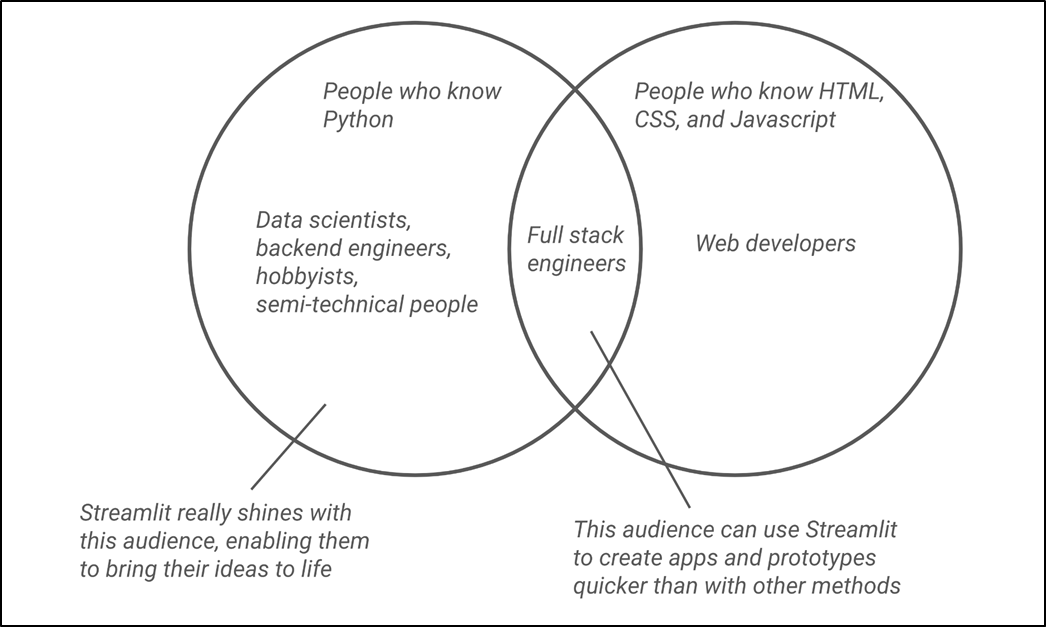 You shouldn't use Streamlit for large-scale apps meant for millions of users, or apps that require a high level of UI customization.