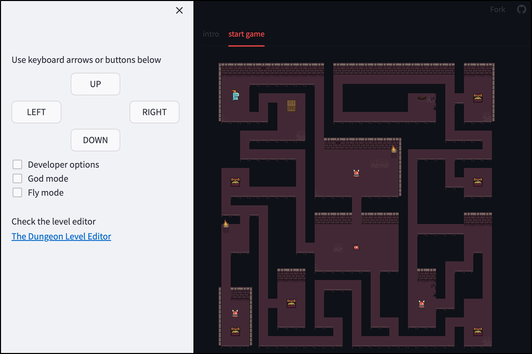 Dungeon, a game created with Streamlit (https://dungeon.streamlit.app/) created by Tomasz Hasiów.