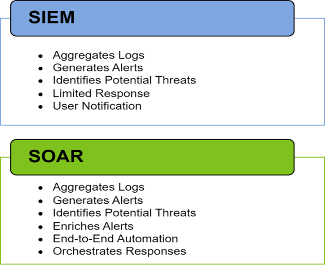 A comparison of the main functionality of SIEM vs SOAR