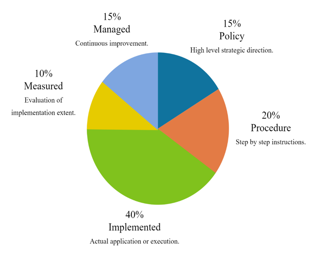 HITRUST scoring criterion by percentage. The percentages indicate the weights placed on each category for scoring purposes.