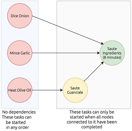- Upstream nodes must be completed before work can begin on any dependent downstream nodes.