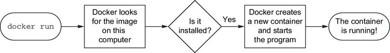 Running docker run a second time. Because the image is already installed, Docker can start the new container right away.