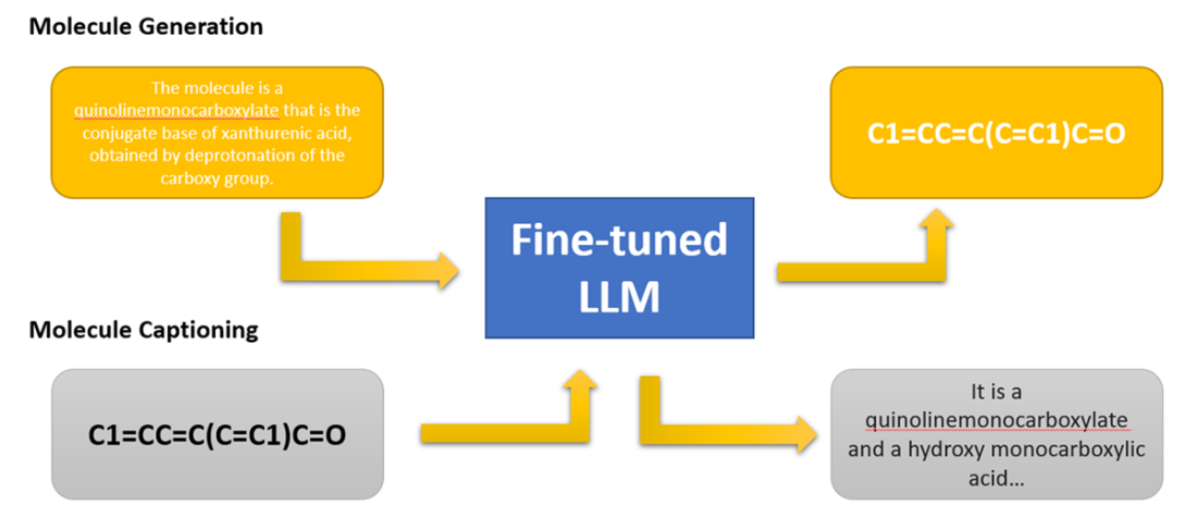 A LLM trained for tasks on molecule structures (generation and captioning)