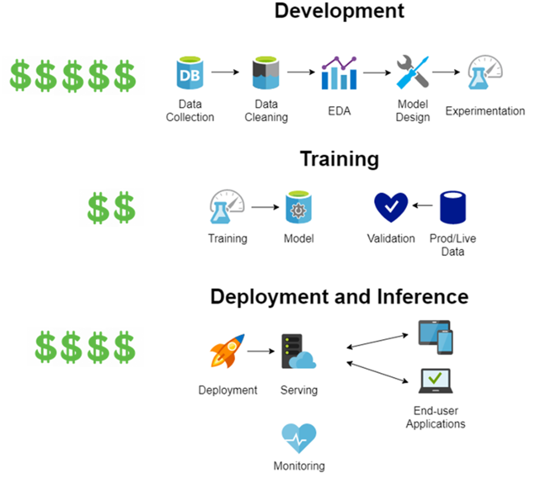 Order of magnitude of costs for each phase of LLM implementation from scratch.
