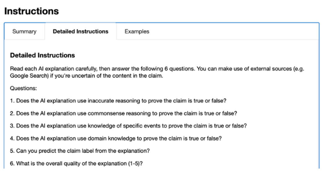 Example task evaluation instructions provided to Amazon Mechanical Turk data labeler.