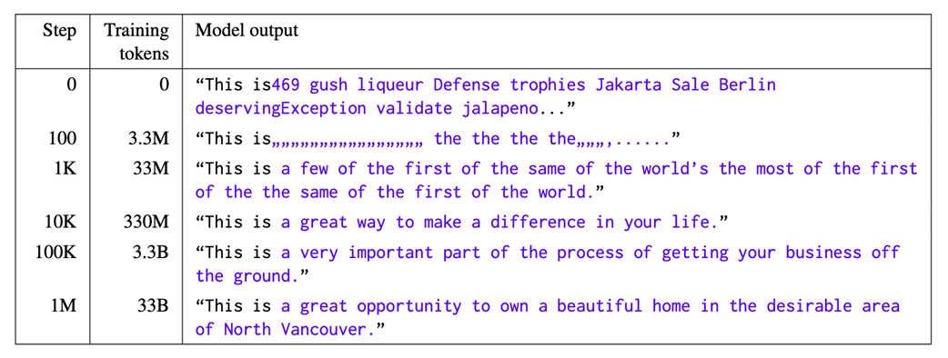 Training progression showing how models learn format before knowledge. Source: “Characterizing Learning Curves During Language Model Pre-Training: Learning, Forgetting, and Stability” by Chang et al, 2023.