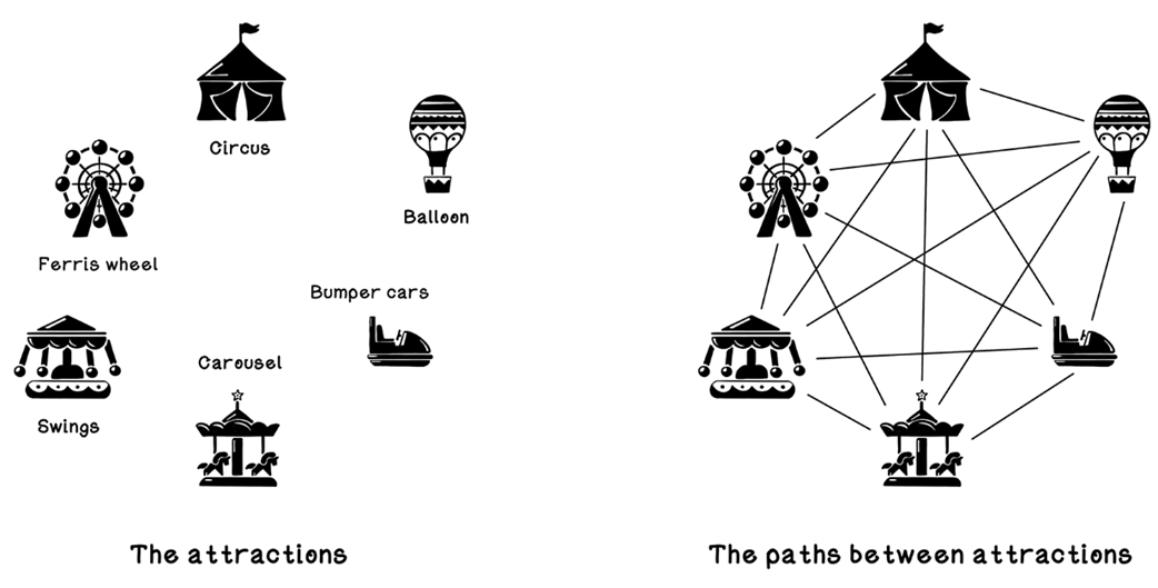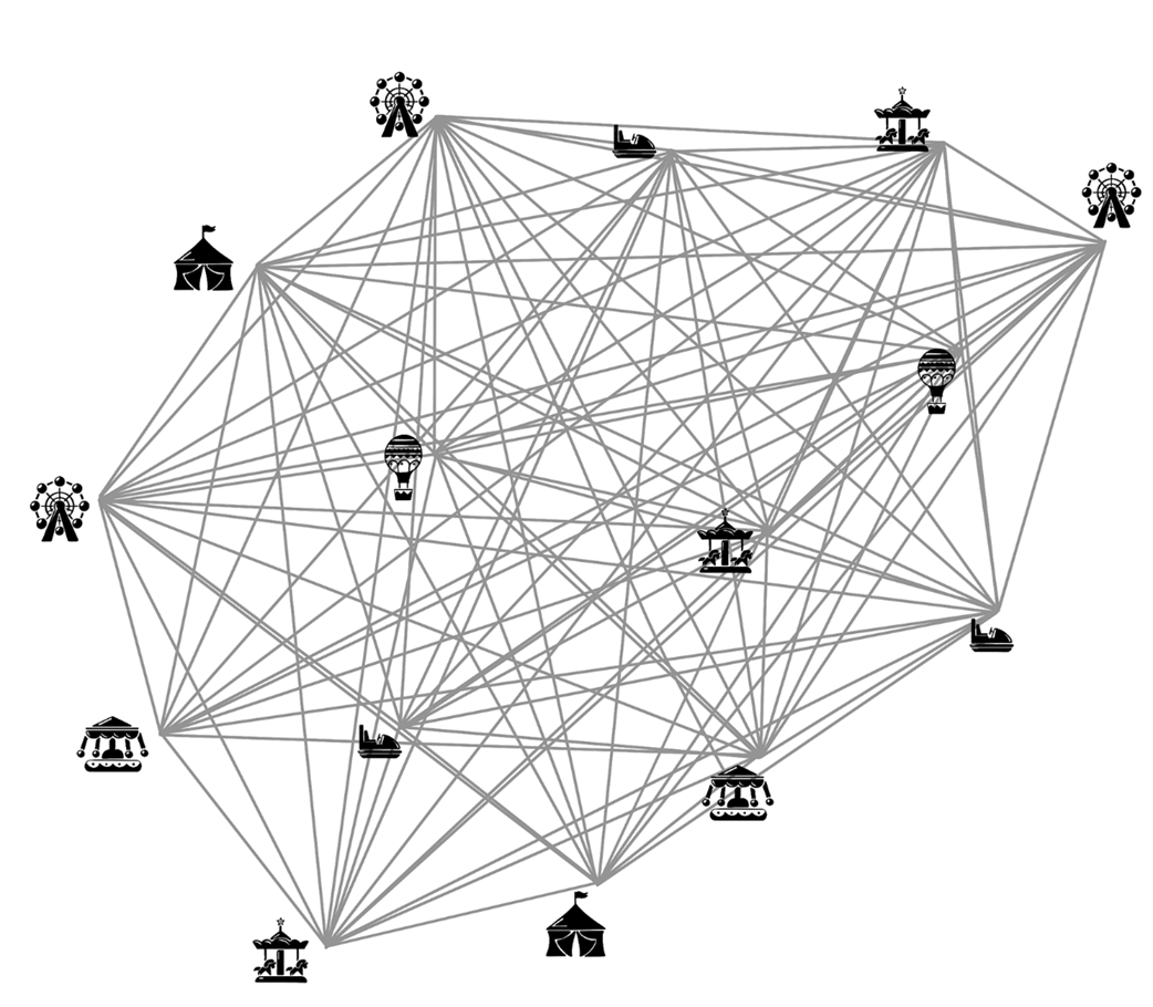 Carnival attractions and paths between them