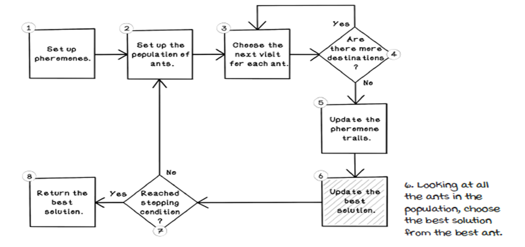 5) Update the best solution found so far
