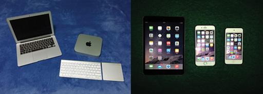 MacBook Air and Mac mini are just a couple of options for developing your apps (left); iPad, iPhone and iPod touch are testing options (right)