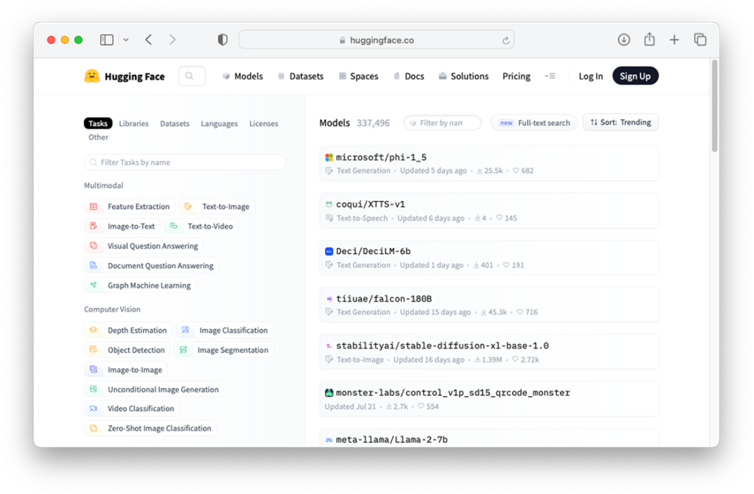 - The Hugging Face Hub’s Models page hosts many pre-trained models for a wide variety of machine learning tasks.