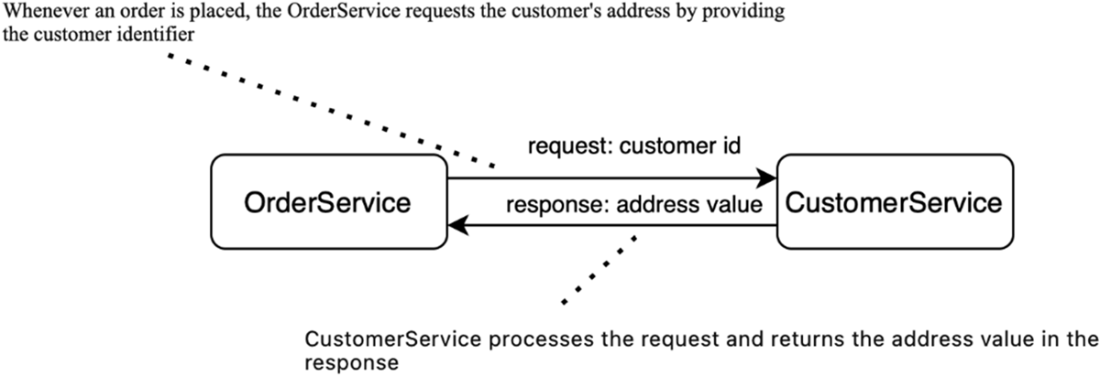 - There are two primary communication patterns between services: request-response and event-driven architecture.