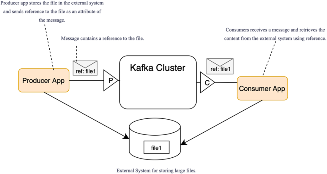 Passing messages with references to content stored externally