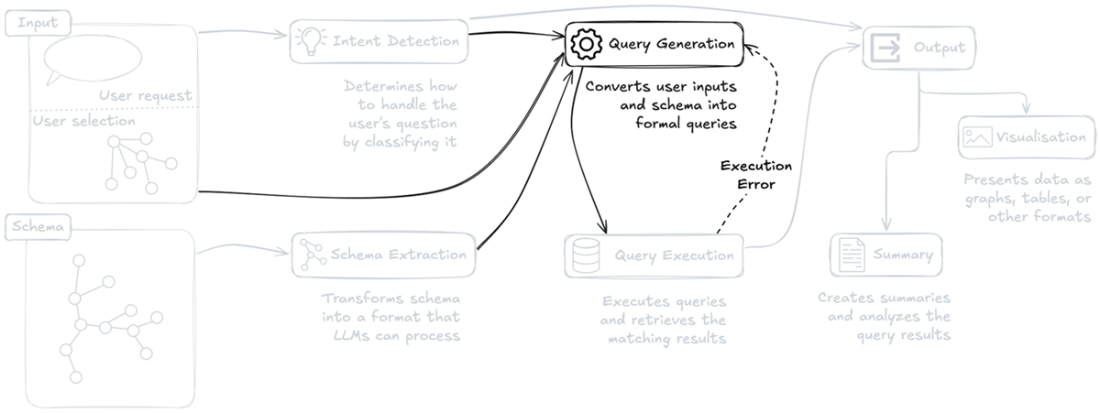 - Producing formal Cypher queries and presenting results meaningfully via the UI