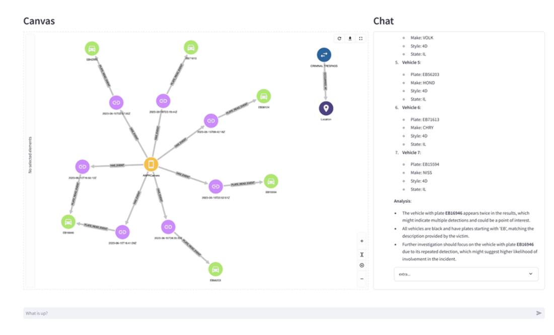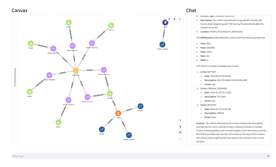 A hands-on investigation illustrates the system’s capabilities: starting from an active crime, the user locates nearby ANPR cameras, retrieves vehicles matching color and partial plate constraints on the incident date, and—with added investigative context—receives deeper summaries that spotlight suspicious temporal patterns. The analysis culminates by linking vehicles to owners with relevant criminal histories, demonstrating how spatial, temporal, and historical signals converge into actionable insights. Looking ahead, the chapter outlines evolution paths powered by observability—mining success and pain points to refine prompts and examples, enriching and layering schemas for scale, sharpening intent detection, and exploring fine‑tuned, knowledge‑graph‑aware components to boost accuracy and efficiency while preserving the transparent, expert‑emulated design.