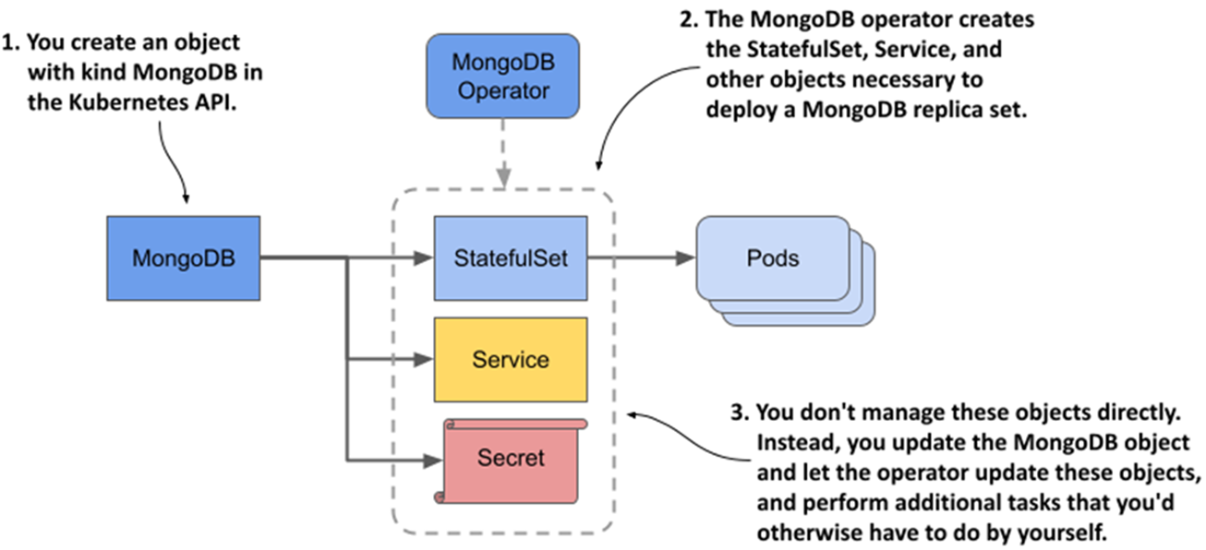 - Since StatefulSets don’t provide everything needed to fully manage a stateful workload, these types of workloads are typically managed via custom API object types and Kubernetes Operators. You create an instance of the custom object, and the Operator then creates the StatefulSet and supporting objects.