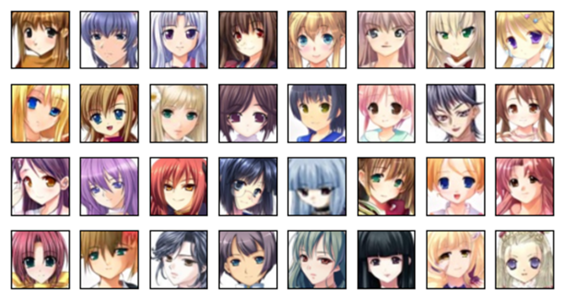 Examples from the Anime faces training dataset.