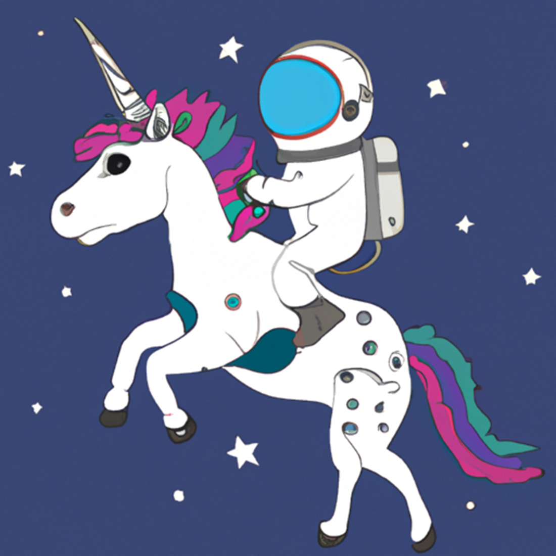 Image generated by DALL-E 2 with text prompt “an astronaut in a space suit riding a unicorn”.