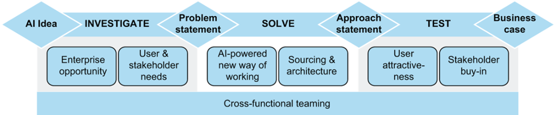 The proposed AI Road Test unifies best-practice tools into a bias-resistant, pre–proof of concept discipline: it clarifies the business problem with issue trees, uncovers user and stakeholder needs with Design Thinking, profiles data via EDA, and aligns organization and tech readiness through maturity and architecture assessments. It forces early, high-impact choices—scope, build vs. buy vs. rent, interpretability and causality needs, regulatory and ethical constraints—and enforces objective stage gates (problem statement, approach statement, business case) that enable GO/NO GO/PIVOT decisions. Far from slowing teams, this upfront clarity accelerates delivery, boosts motivation by tying a clear “to‑be” state to tangible benefits, and preserves flexibility to pivot when plan A falters. Traditional frameworks like CRISP-DM and TDSP remain useful foundations but are too high-level, ML-centric, and light on bias, compliance, and off‑the‑shelf options for today’s realities. A disciplined road test helps organizations select the right use cases—often in core functions where value concentrates—reduce waste, and consistently convert AI’s potential into durable business impact.
