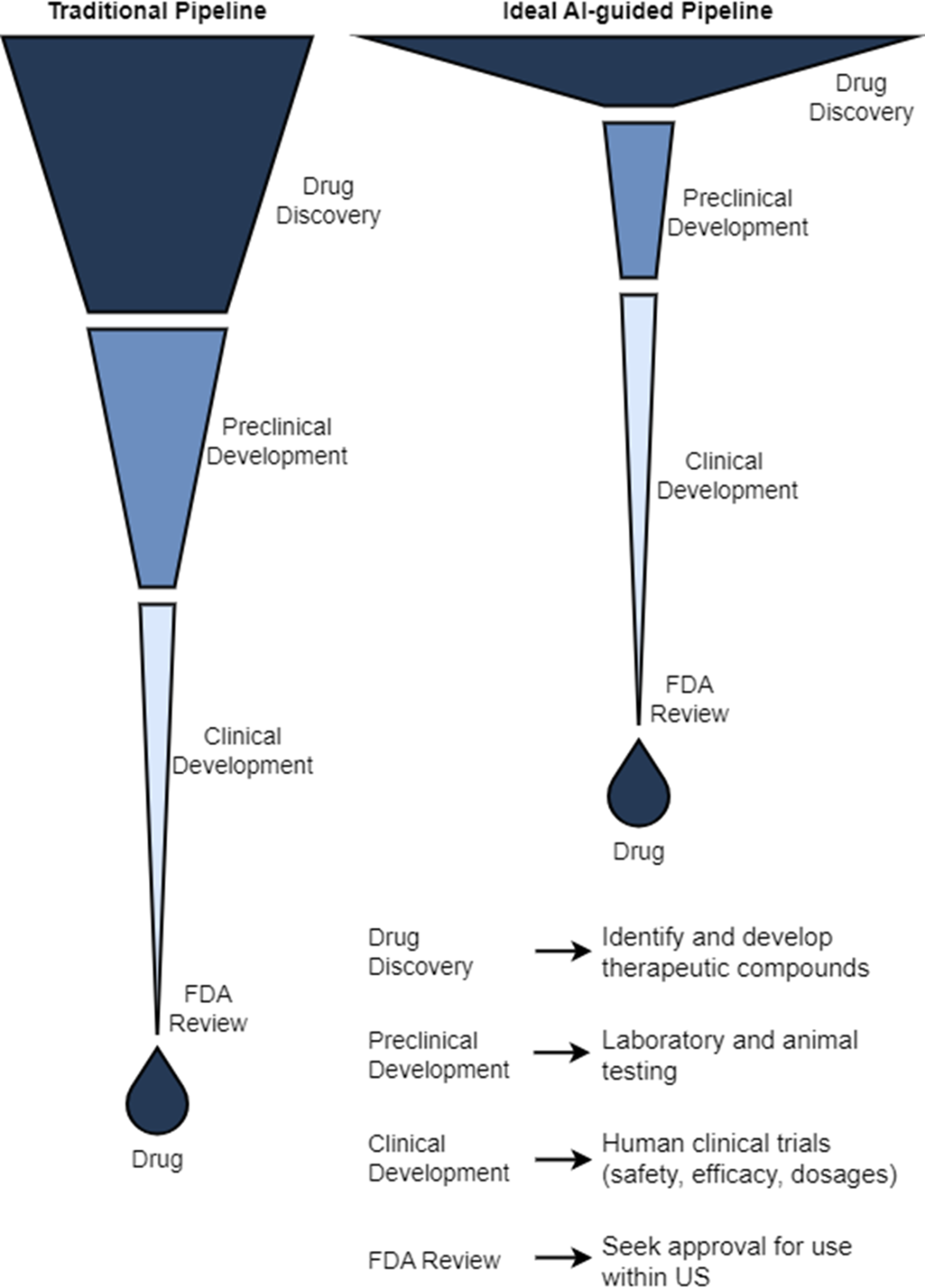 - Developing therapeutics entails a long, arduous process. Traditional development from ideation to market is costly (magnitude of billions of dollars), lengthy (10 to 15 years), and risky (attrition of over 90%). Through advances in AI, we can discover cures that have better safety profiles, address medical conditions or diseases with low coverage, and can reach patients quicker.