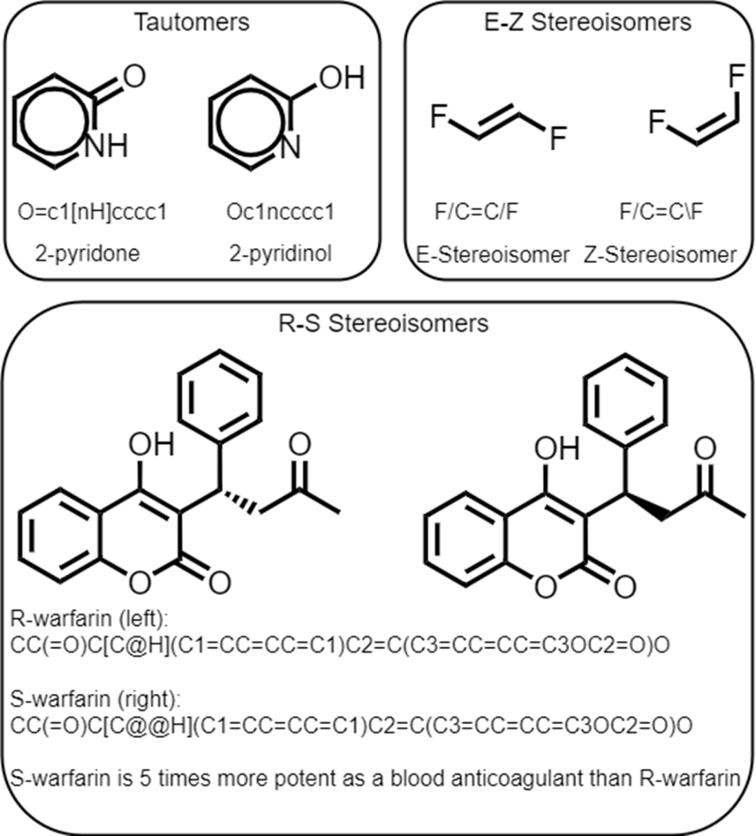 Example pairs of isomeric SMILES.