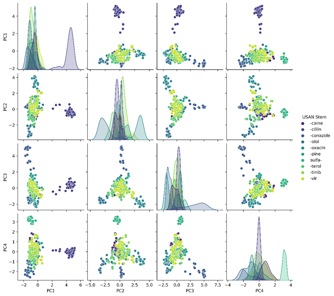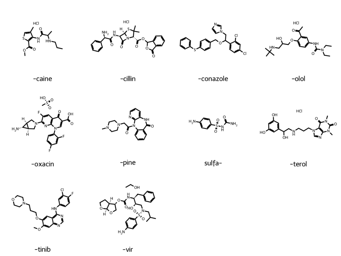 Example drug molecules for each USAN stem classification within our data set.