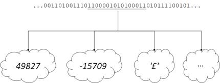 The sequence of bits typed as a signed 16-bit integer. The type information (16-bit signed integer) tells the compiler and/or runtime that the sequence of bits represents an integer value between -32768 and 32767, ensuring the correct interpretation as -15709.