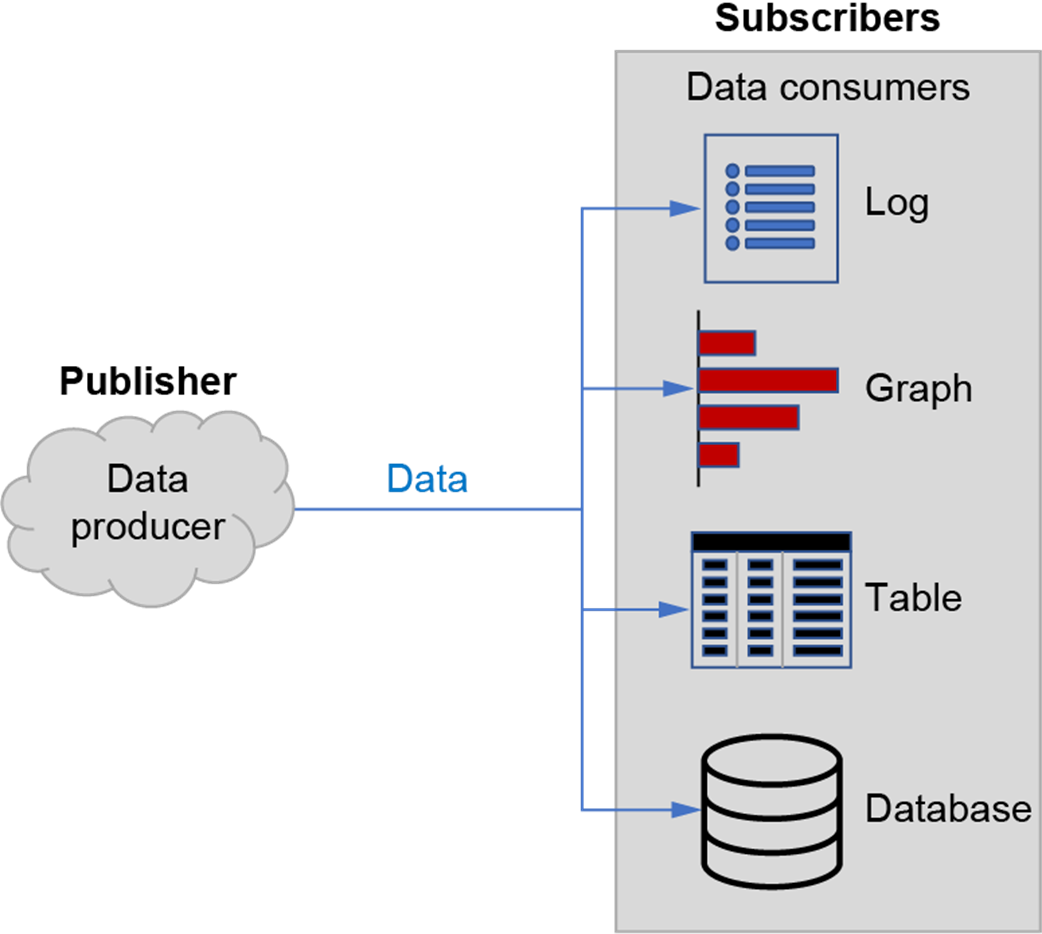 Publisher–subscriber is a common software architecture situation. One application component produces data that other application components consume. The Observer Design Pattern provides a model to solve this problem.
