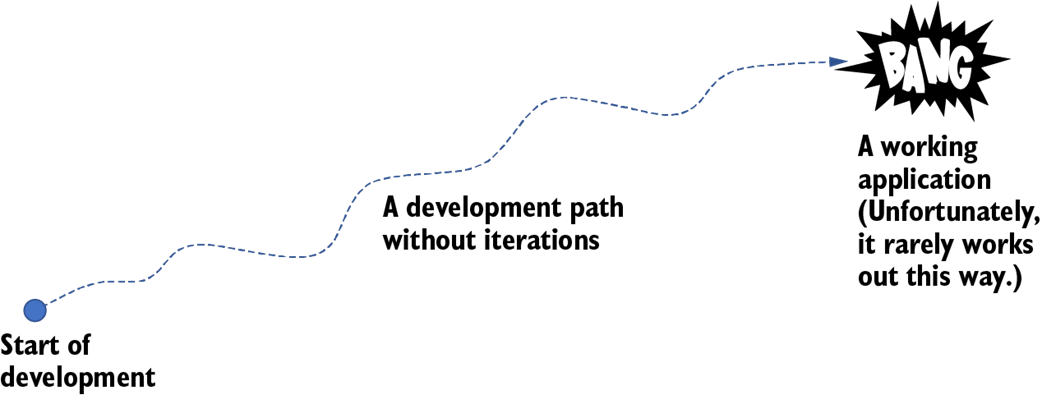 The Big Bang theory of application development. If we write lots of code in a prolonged marathon instead of developing the software iteratively, we can only hope that the Big Bang at the end will magically produce a working application. Unfortunately, that magic rarely happens.