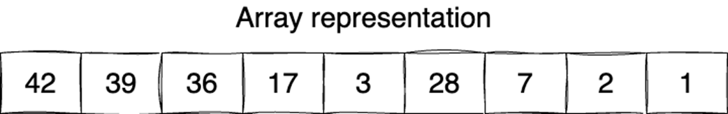 Heaps are commonly backed by arrays. For an element at index i: left child at 2i + 1, right child at 2i + 2, parent at (i − 1) / 2.What are the time complexities of common heap operations?