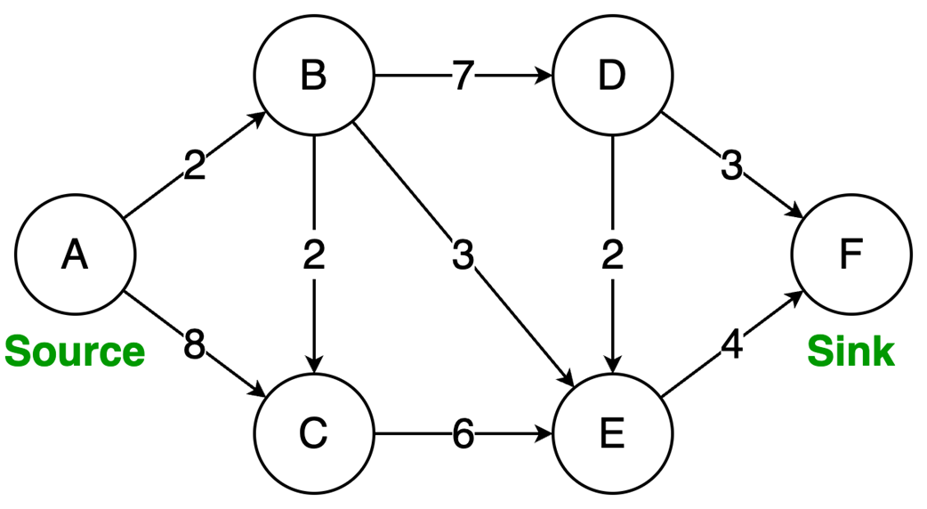 - Using DFS, the time complexity is O(EU), which depends on the final solution, but switching to BFS (Edmonds-Karp variation) results in a time complexity of O(VE²), making it dependent only on the graph structure.