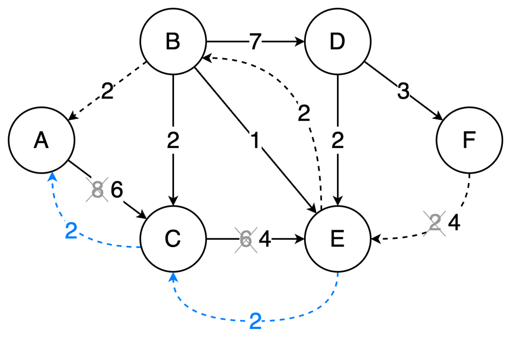 - Backward edges allow redistribution of flow, which corrects any suboptimal choices made by selecting arbitrary augmenting paths.