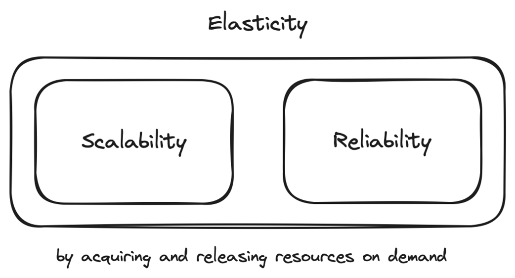 - Elasticity refers to a system's ability to ensure scalability and reliability by dynamically acquiring or releasing resources to match demand.