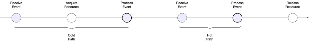 - Traditional systems acquire resources that are necessary to process events proactively, before receiving the event.