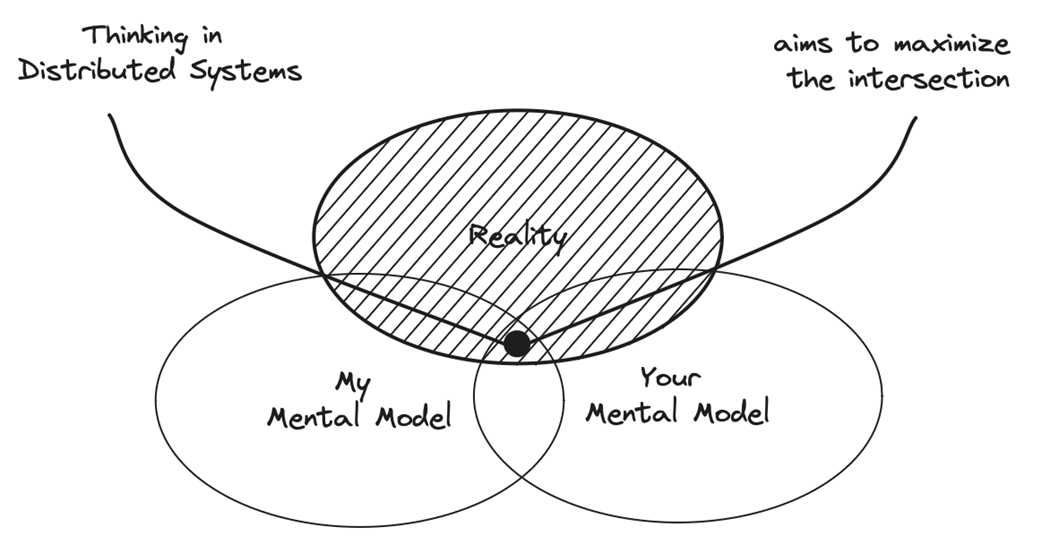 Thinking in distributed systems aims to maximize the intersection of our mental models with reality and each other.
