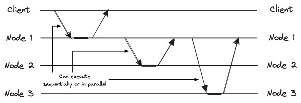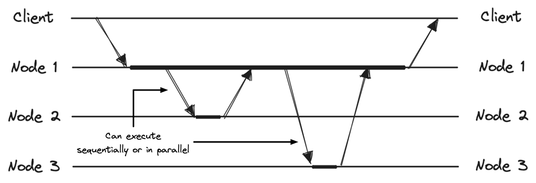 - Asynchronous: an operation completes after the initial node processes it; replication happens in the background. Pro: low latency and higher availability. Con: replicas can be stale.