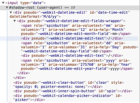 Enabling shadow root settings in the Chrome dev tools allows us to see the input tag’s hidden Shadow DOM.
